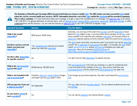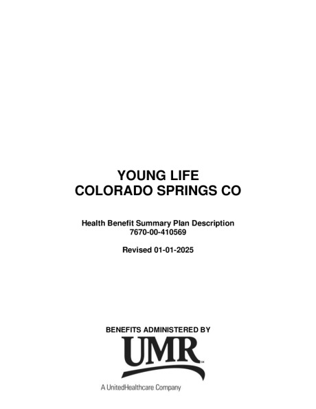 Young Life offers eligible employees two medical plan options through UMR which utilizes the United Healthcare Choice Plus network of providers. All monthly premium costs for both plans are paid for by Young Life and billed to your mission unit. You can maximize coverage by utilizing in-network providers.